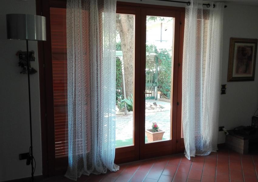 Pesaro, località Vismara vendesi villetta libera su tre lati in ottime condizioni di manutenzione e buone finiture. Al piano terra tavernetta abitabiloe con salotto o camera, ampia cucina con camino, bagno, il tutto con accesso diretto al giardino in parte a verde e in parte pavimentato coperto da portico. Primo piano reparto giorno di appartamento con soggiorno, cucina, bagno oltre a sovrastante piano con tre camere, bagno. Mansarda abitabile.