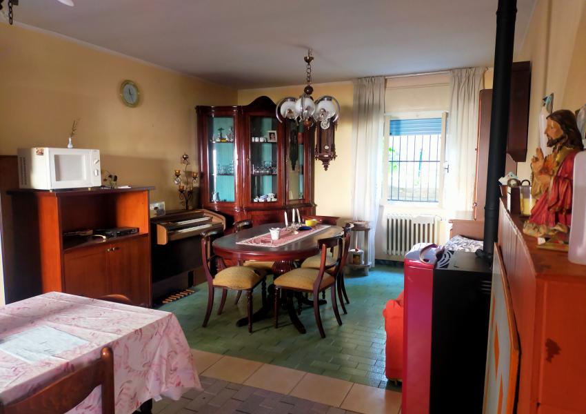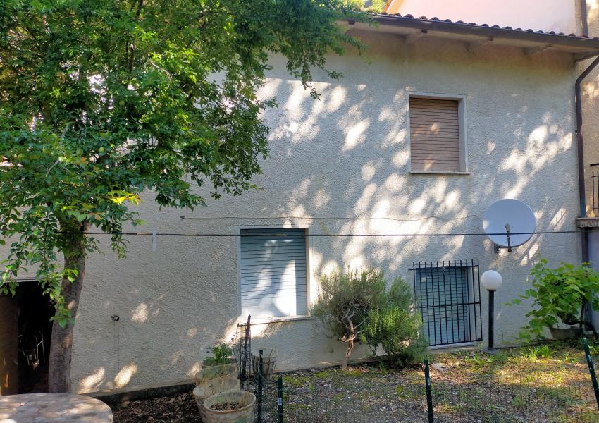 Località Pianello di Cagli (PU) vendesi casa a schiera costruzione anni '60, comunque in buone condizioni, composta da piano terra con ingresso, salone/cucina con camino, grande garage; piano primo disimpegno, quattro camere matrimoniali e bagno. Sul retro giardino esclusivo per circa 80 mq. La casa ha una superficie di mq. 170.