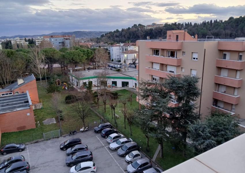 Pesaro, zona Vismara, vendesi appartamento al sesto piano (penultimo) composto da salone, cucina abitabile, due camere matrimoniali, due bagni, balconi in ogni stanza oltre a terrazza di 15 mq. Posto auto e cantinetta. Riscaldamento autonomo. Facciate esterne a posto. Posizione tranquilla, soleggiata, con vista.