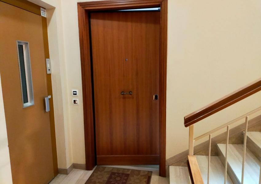 MONTEGRANARO alta vista città vendesi appartamento di grande metratura, circa 215 mq. posto al secondo piano, con ascensore, di piccola palazzina. Quattro balconi circondano il perimetro dell'immobile. Al piano terra garage di 40 mq. Da progetto erano previsti due appartamenti, che sono ancora facilmente realizzabili (vi sono infatti due portoni blindati al pianerottolo). Attualmente l'appartamento si compone di ingresso, cucina abitabile, sala da pranzo, salone, cinque camere e tre bagni, oltre a ripostiglio. Subito libero.