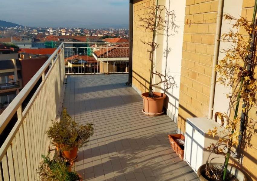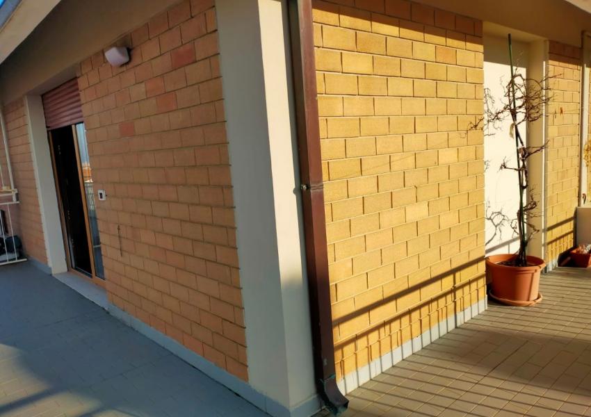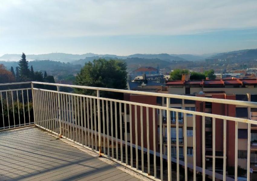 Montegranaro vendesi attico al terzo piano, con ascensore con magnifica vista sulla città. L'immobile ha una superficie di mq. 120 circa con ingresso, cucina abitabile, soggiorno con terrazzo mq. 30 circa, tre camere, due bagni finestrati, ripostiglio piu' balcone in camera. Soprastante soffitta (uso sbroglio). Garage mq. 35.
